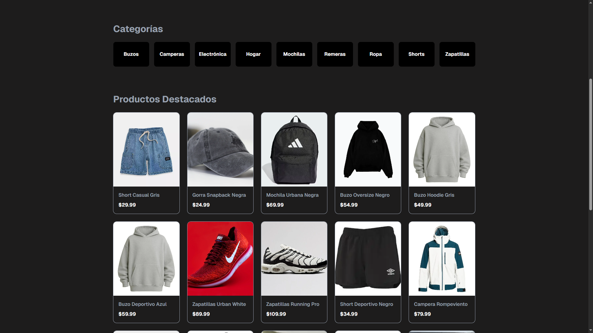 Desarrollé una aplicación de ecommerce donde los usuarios pueden explorar productos, agregarlos al carrito y simular un proceso de compra. La aplicación cuenta con un frontend moderno construido con Next.js y TailwindCSS, manejo de estado global para el carrito con Zustand y una experiencia de usuario optimizada con animaciones y diseño responsive para dispositivos móviles y escritorio.